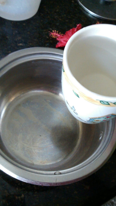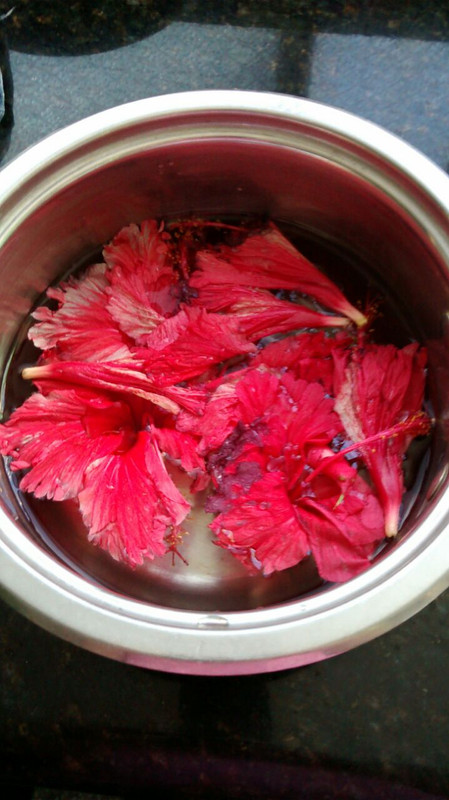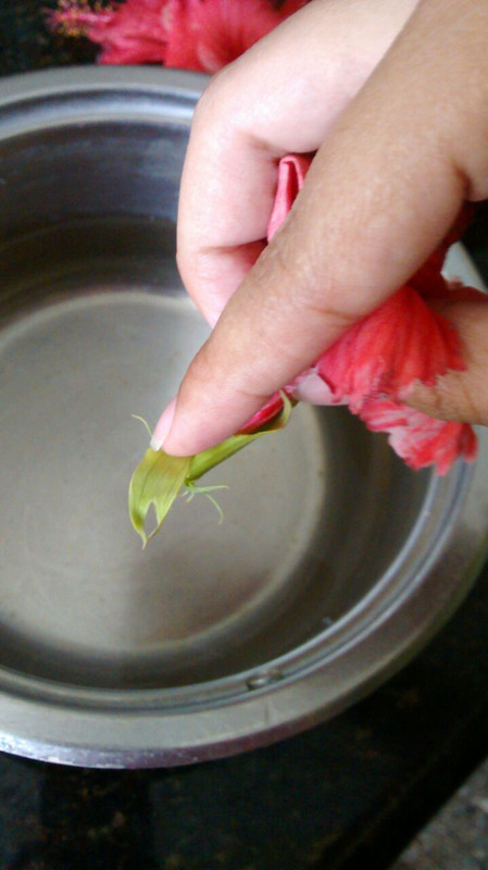 - The first thing is to pour the 2 cups of water in the pot, then remove the green root of the cayenne flowers.