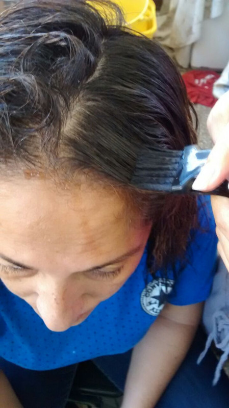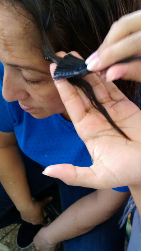 • Repetimos este proceso mechón por mechón, hasta terminar. Se deja media hora y se saca con agua y champú.