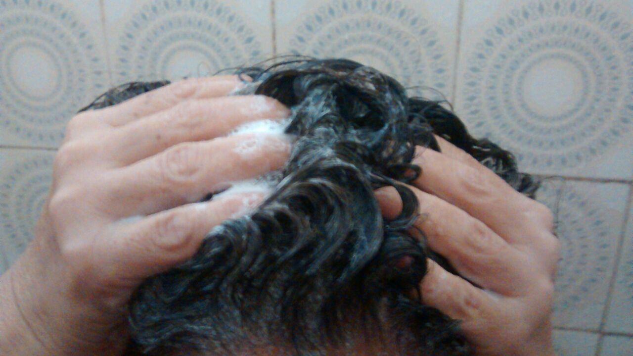 • Se lava el cabello con champú como de costumbre, para sacar la grasa del mismo.