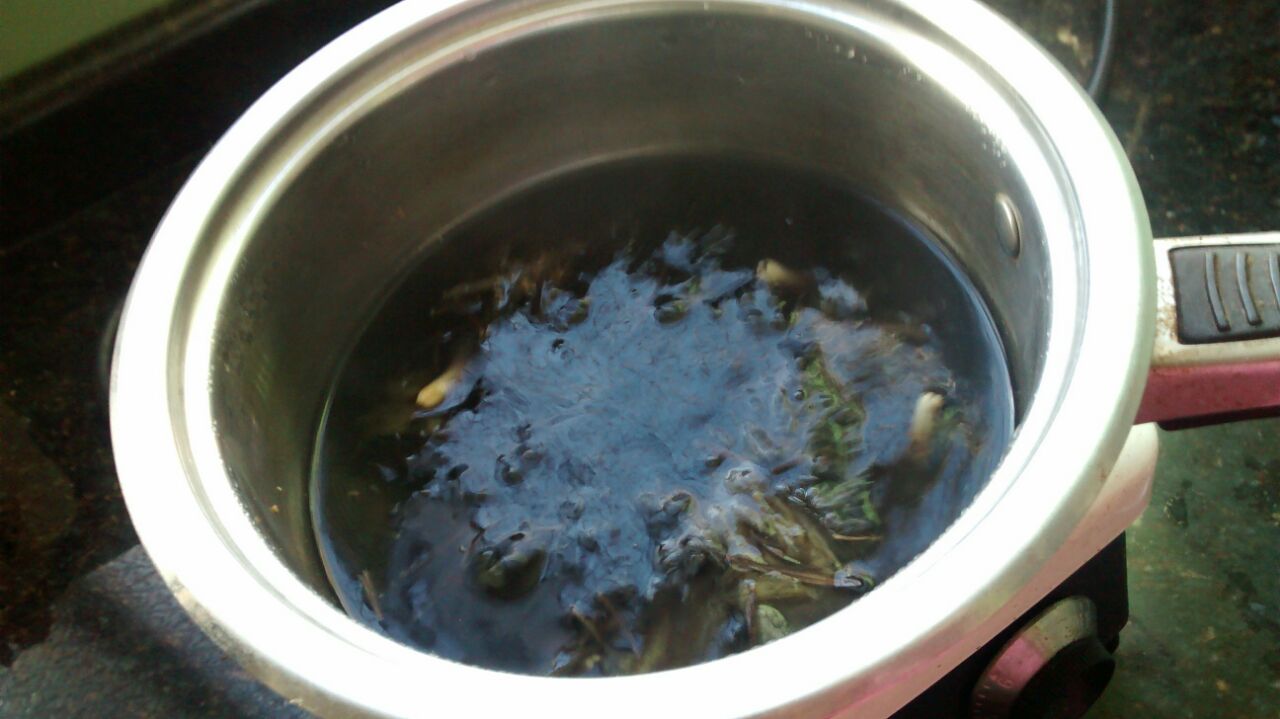 - When it is ready, we take it to the water, which at this point should be beginning to take color.