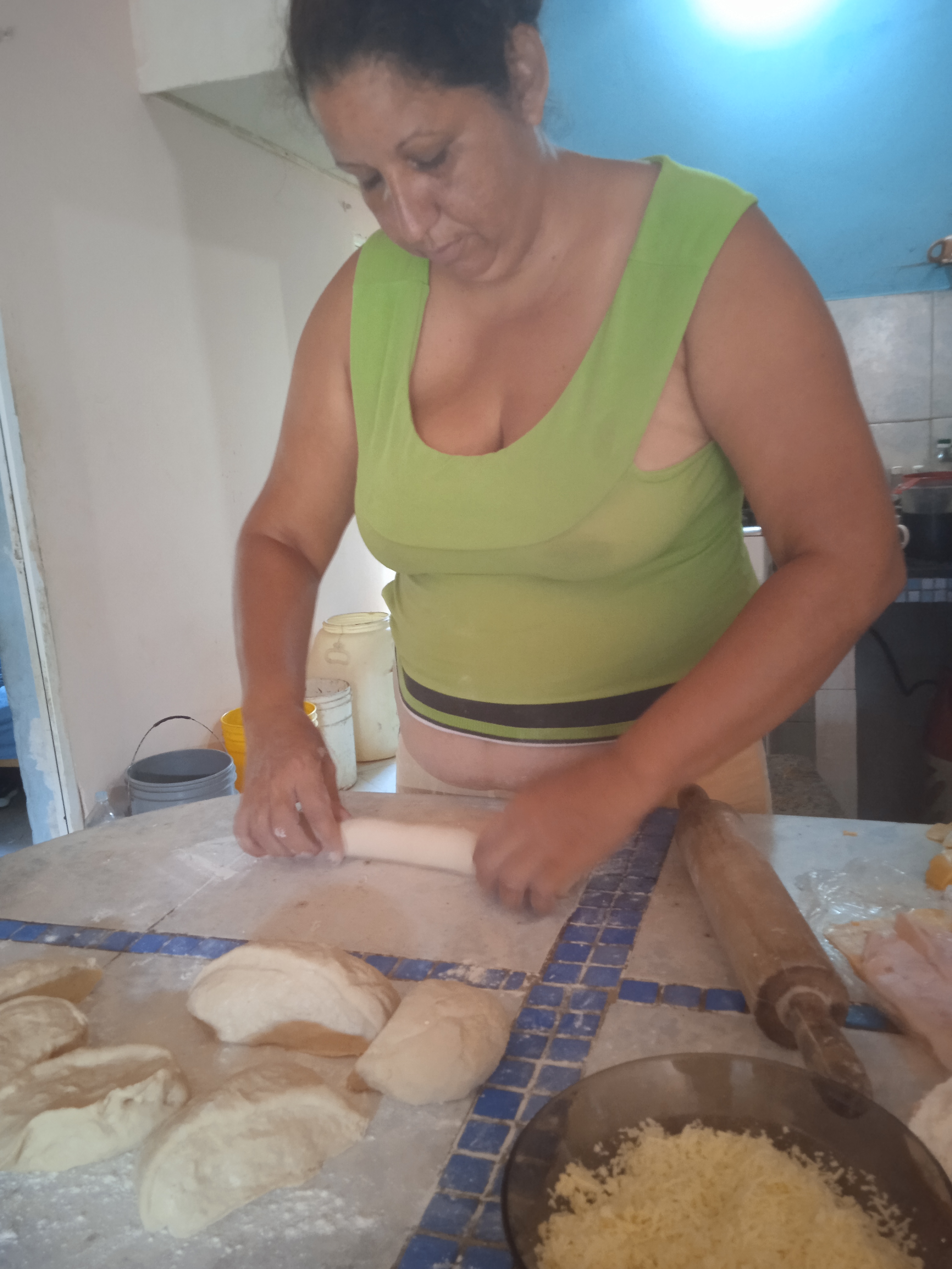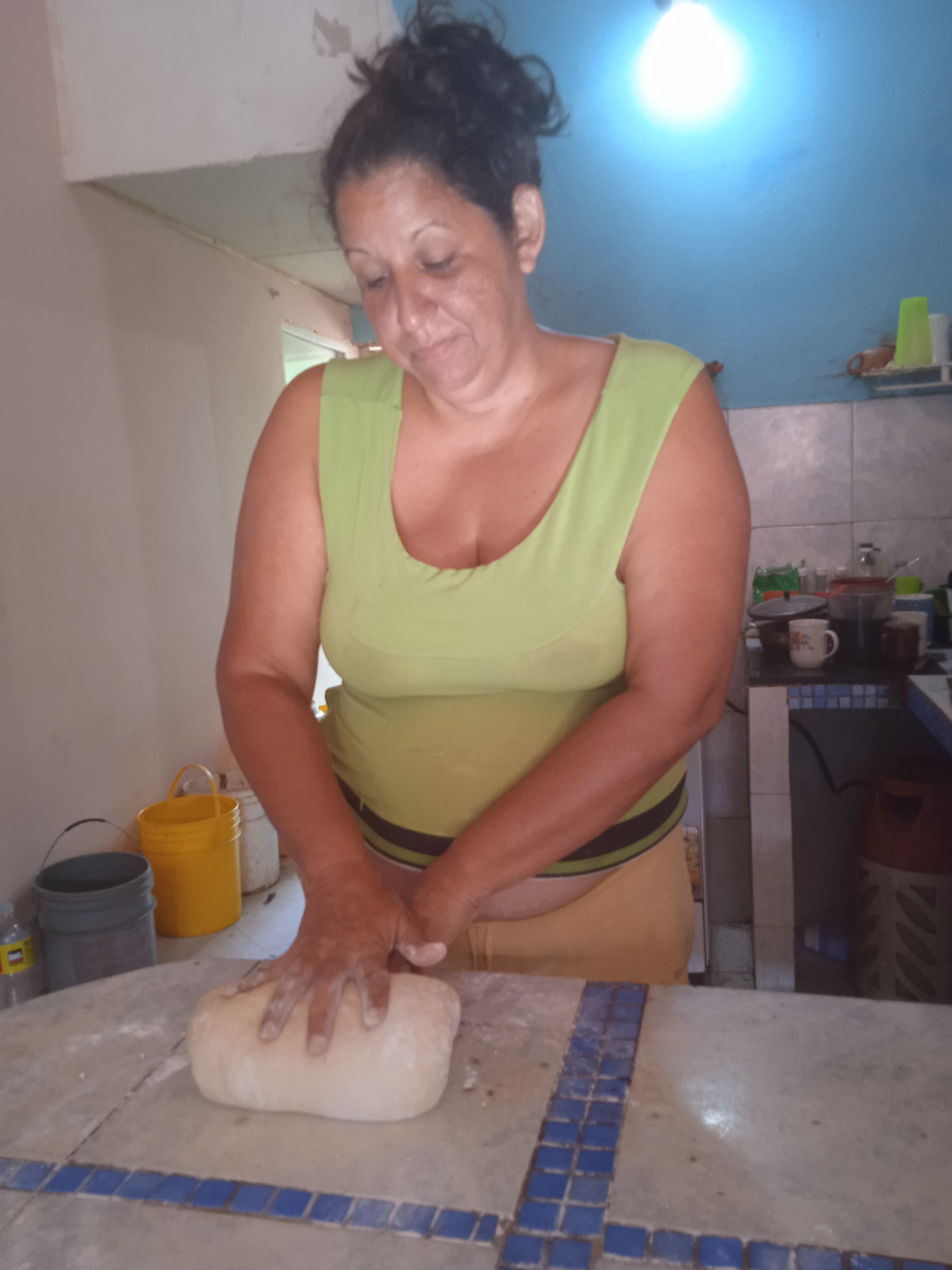 Foto amasando la masa.