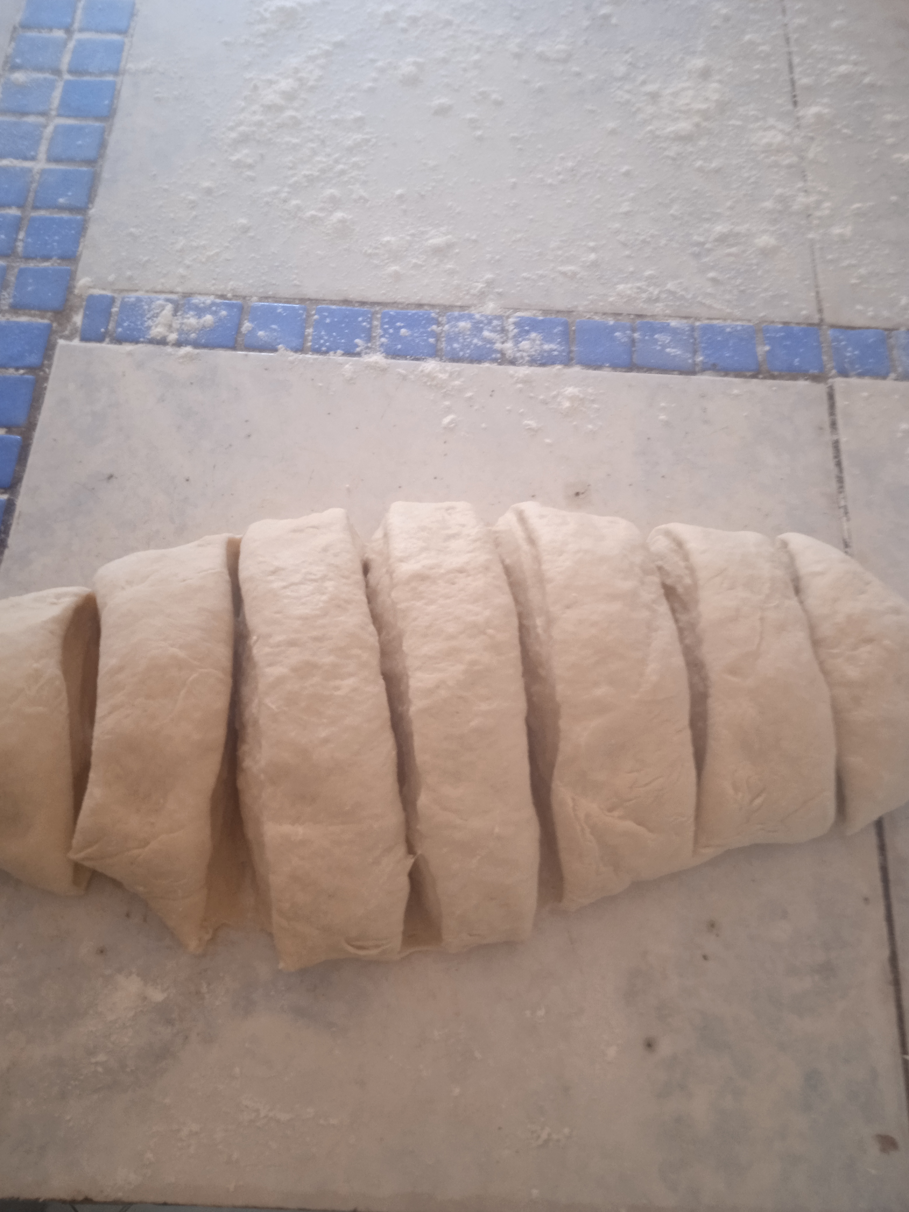 Después que la masa este suave empezamos a picar la masa para preparar los panes.