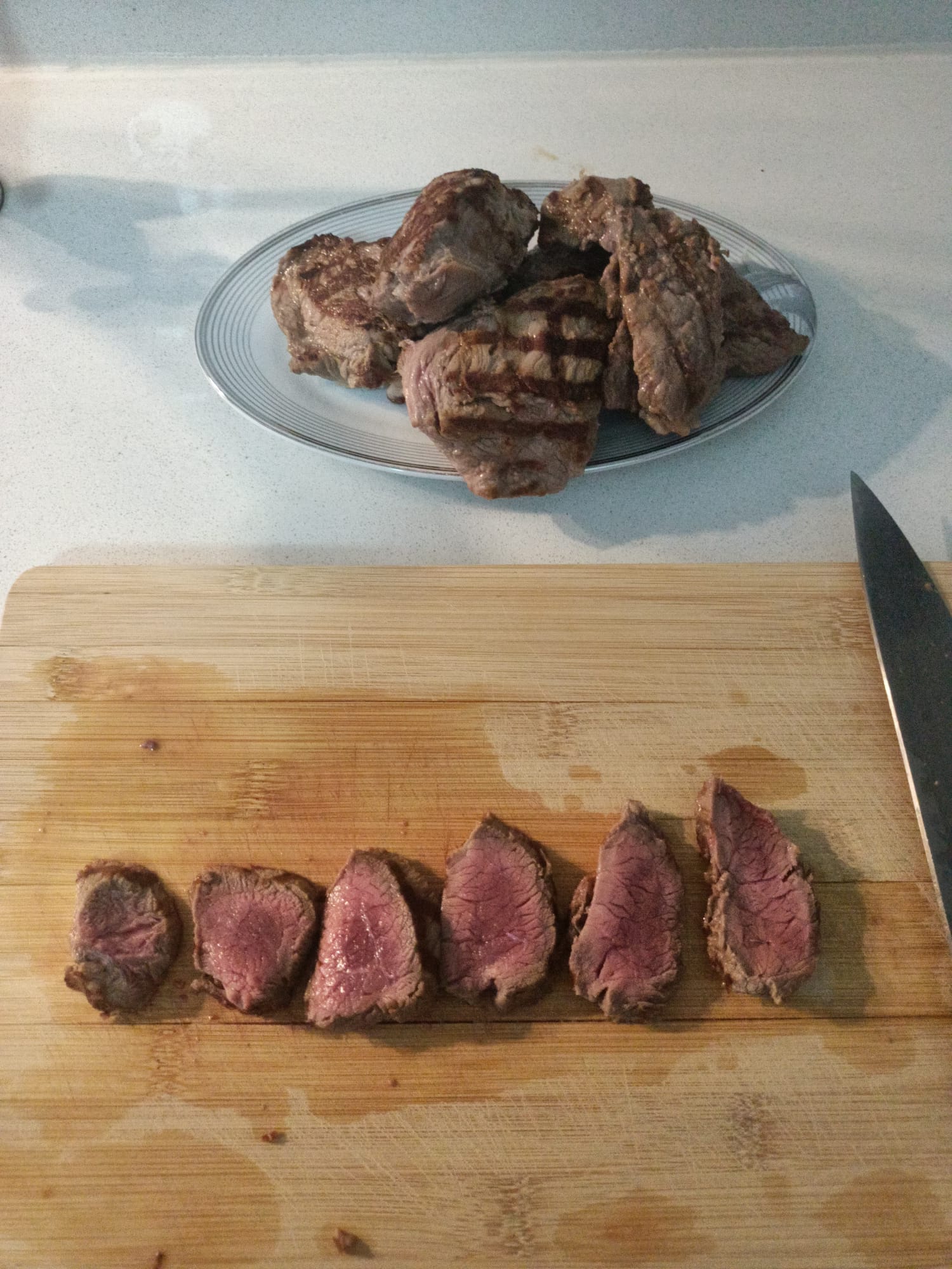 Mühürleme işimi bitirince hızlı bir şekilde etleri kesme tahtası üzerine aldım ve dilimledim.