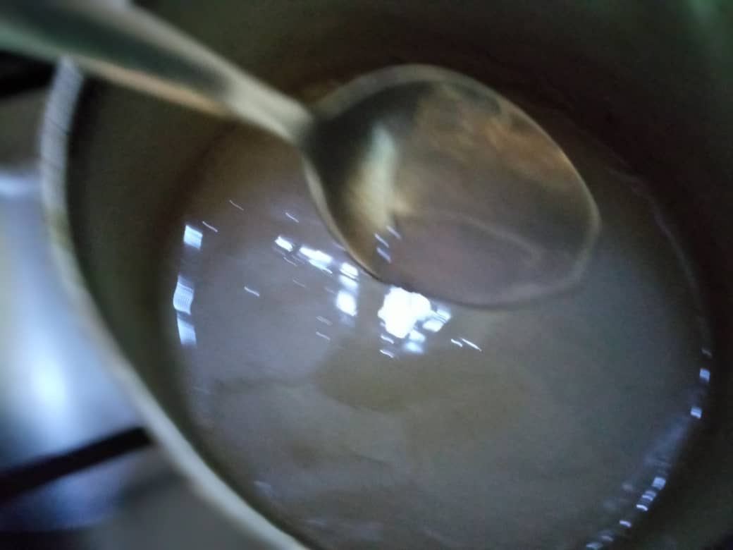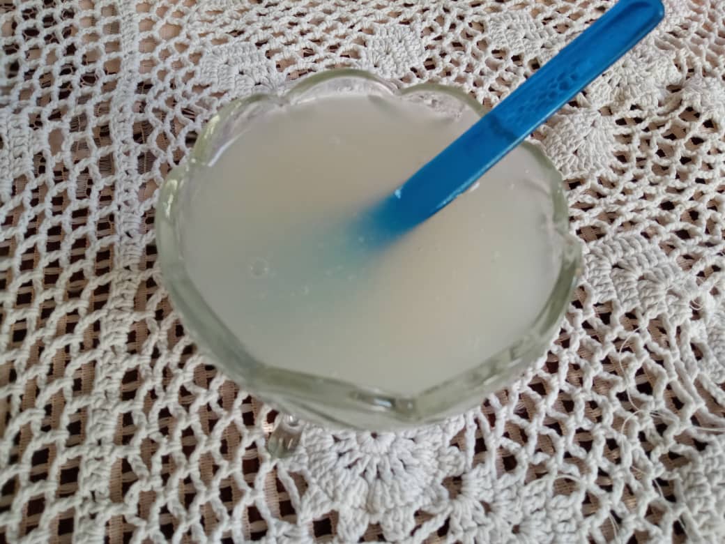 • Put the water and cornstarch in a saucepan, stir and place on the stove over low heat, stirring constantly so that no lumps are formed and the consistency is creamy.