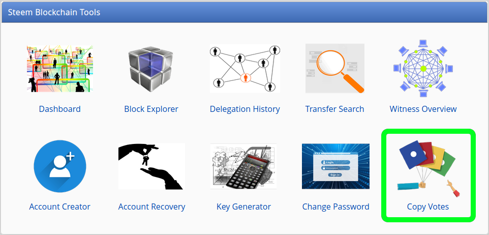 There is a new tool called 'Copy Votes' to be found in the Homescreen on SteemWorld (also directly reachable via steemworld.org/copy-votes).