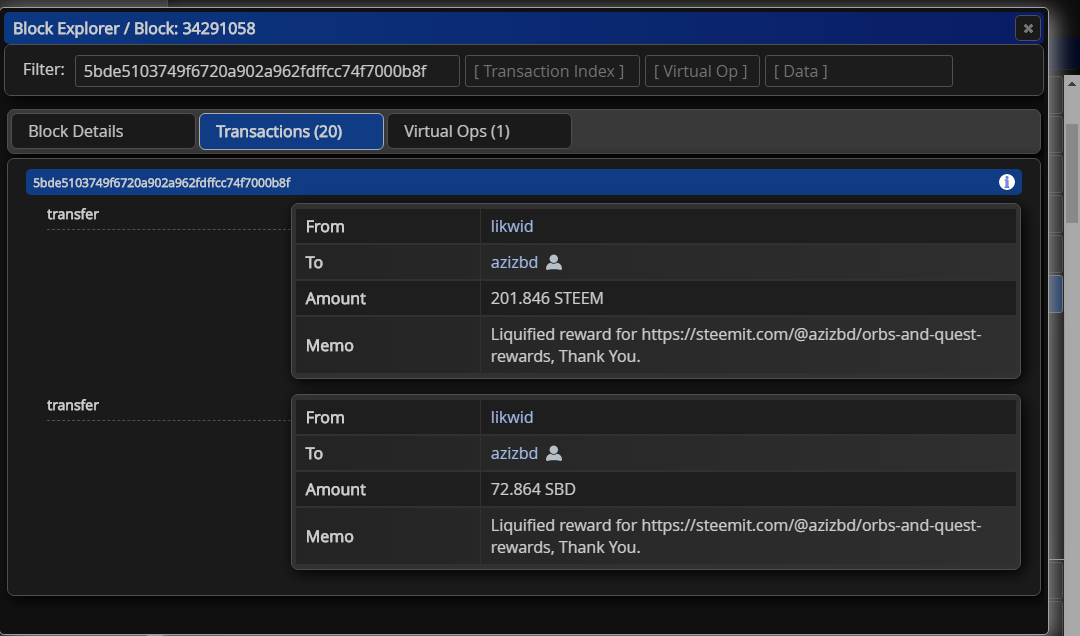 @likwid service always send a single transaction in which there are 2 transfers (1 for SBD and 1 for STEEM). However, in Steemworld it only shows the STEEM tx.