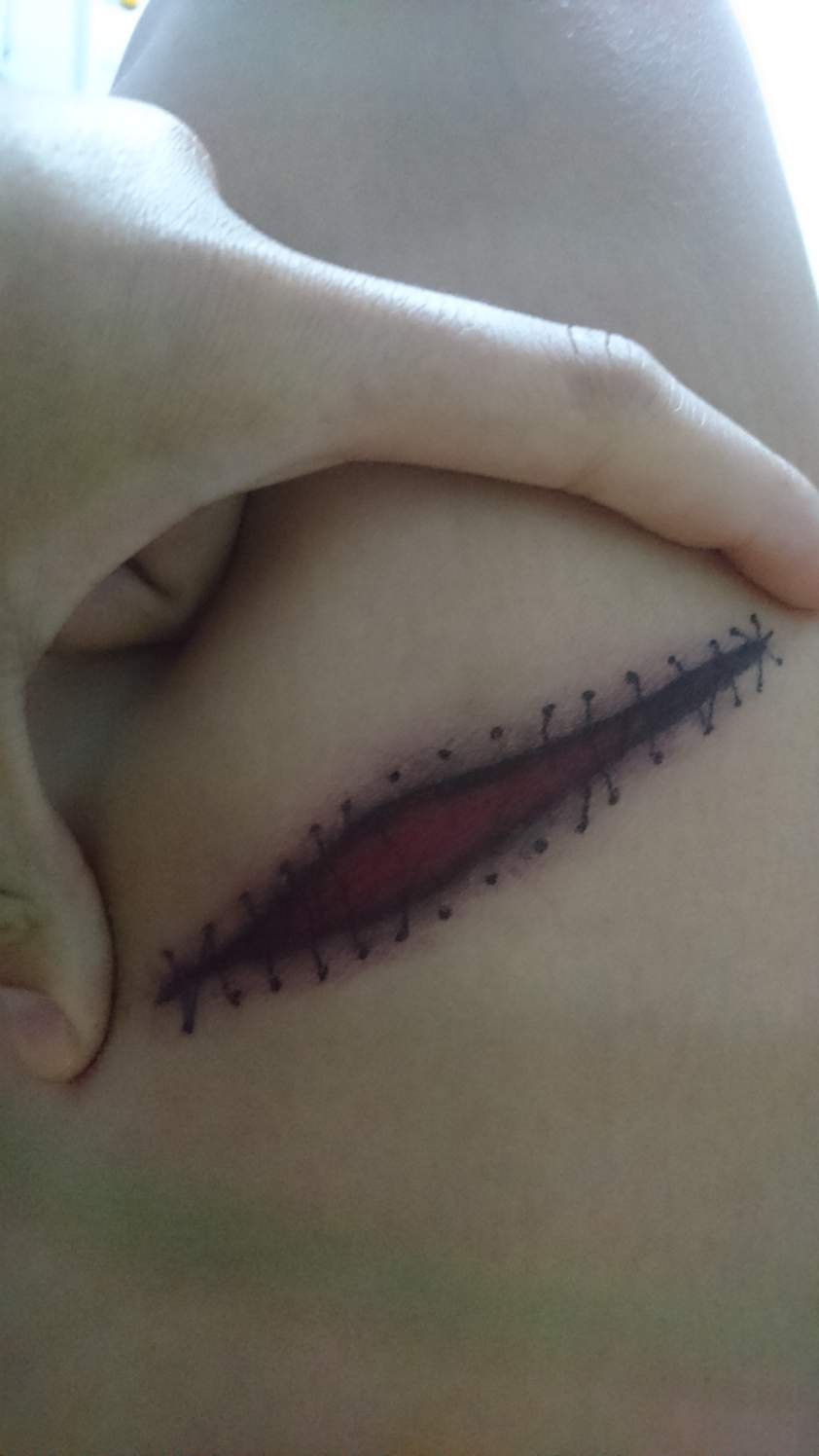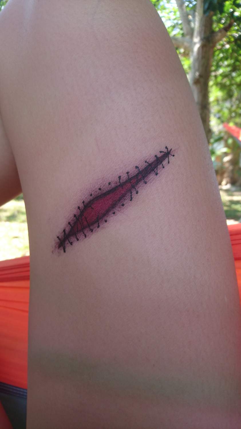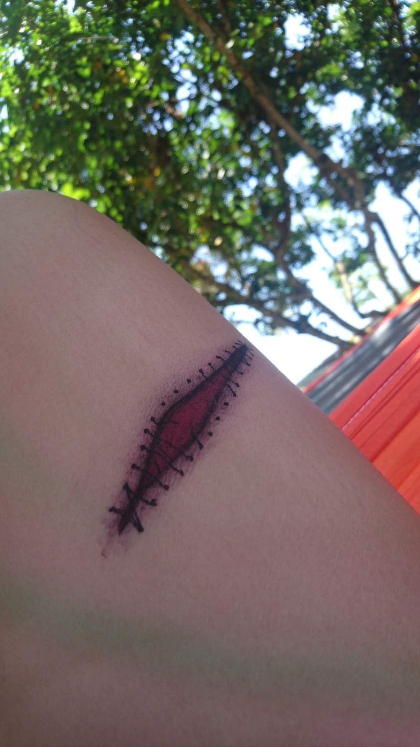 We wanted to do something different,so we decided to draw wounds on our lap and this is how it turned out to be.