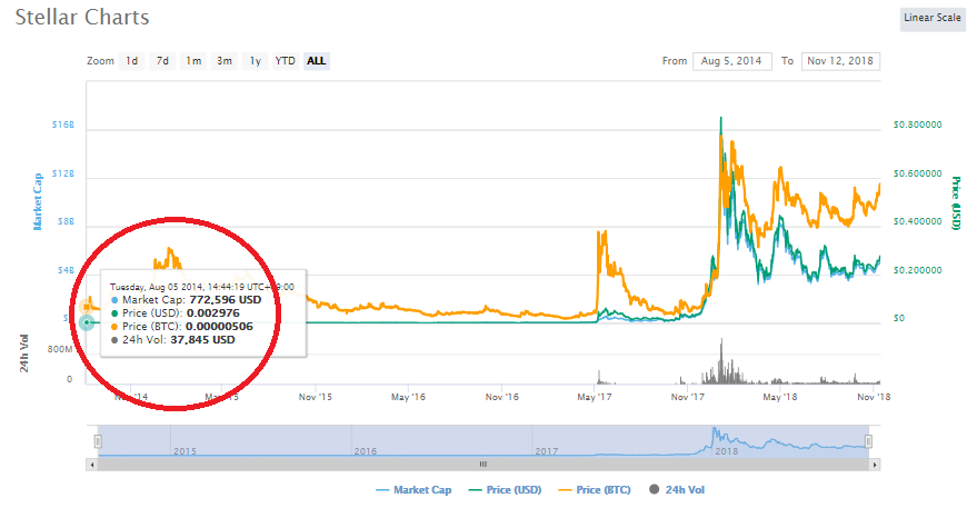 스텔라의 탄생 과정을 보면 이같은 스텔라의 시총 5위 진입은 더욱 의미가 깊다. 지난 2014년 8월 코인마켓캡 기준 0.002976달러(한화 2.26원)로 상장했던 스텔라는 지난 3년간 묵묵히 가격을 올리며 현재 상장가의 100배에 달하는 가격을 유지하고 있는 것이다. 스텔라의 이같은 성장과 관련해서는 스텔라의 기술력이 뒷받침해주기 때문이라는 업계 관계자들의 의견이 있다.