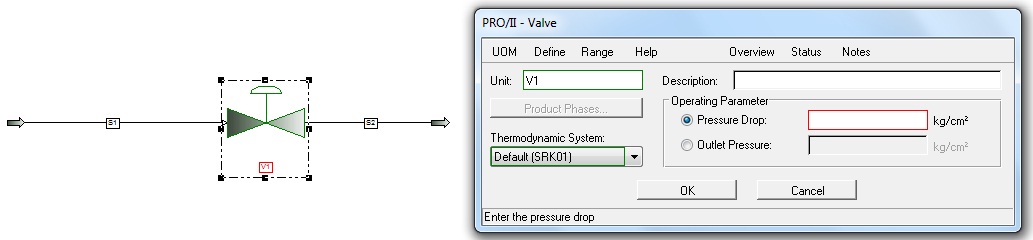 Para el caso del mezclador y la válvula se debe definir la caída de presión o la presión de salida.