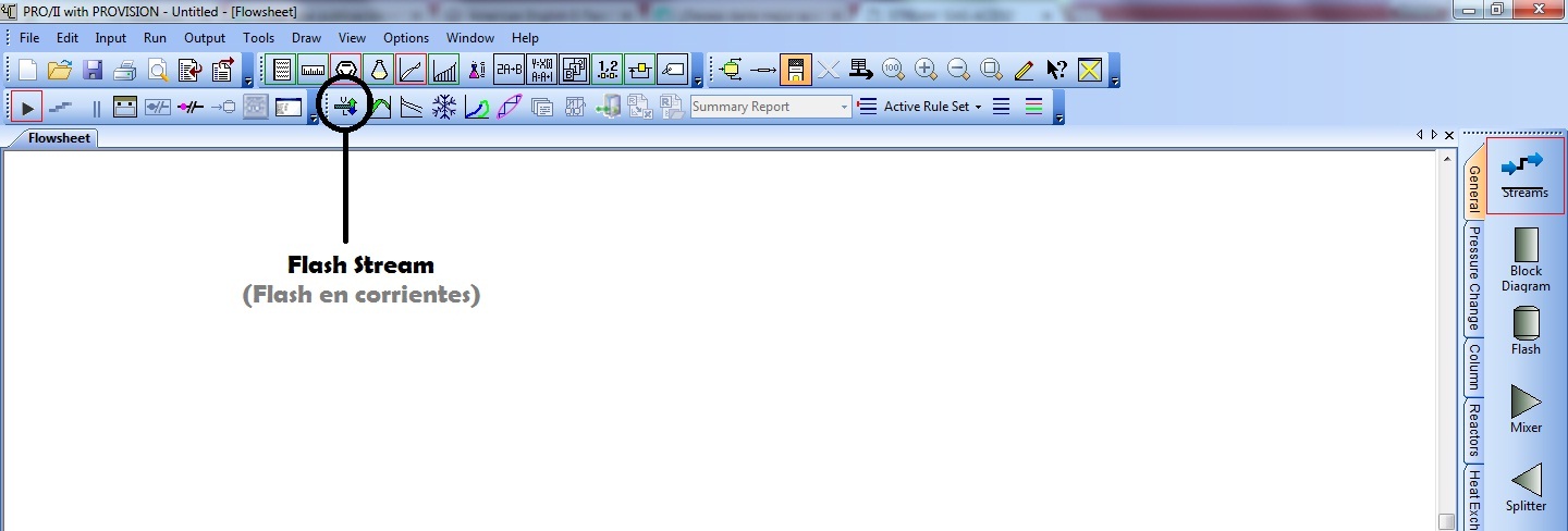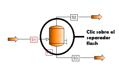 Mediante PRO/II se pueden realizar separaciones líquido-vapor de corrientes bifásicas, para ello se selecciona la corriente, se accede al menú principal del simulador con el ícono correspondiente y se obtienen los resultados.