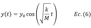 Como el valor de la función coseno oscila entre 1 y -1 entonces el resorte se desplaza desde y0 hasta –y0, es decir, y0 unidades arriba y abajo del punto de equilibrio E describiendo un movimiento armónico simple de amplitud a=|y0|.