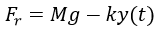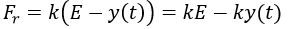 Donde E es el punto en el cual el resorte está en equilibrio, cuando el resorte se estira hasta el punto y(t) entonces se puede decir que se ha desplazado el extremo del resorte E-y(t) por lo tanto aplicando la ley de Hooke la fuerza restauradora en dicho punto será igual a: