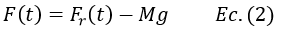 Esta expresión permite calcular la fuerza restauradora que actúa sobre el resorte en función del tiempo t, al sustituir esta fórmula en la ecuación para la Fuerza total resultante se obtiene