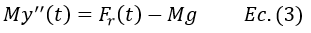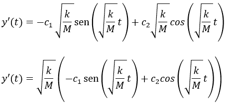 Recordando que sí y(t) expresa la posición de una partícula en función del tiempo, entonces la primera derivada de y(t) representa la velocidad de dicha partícula y la segunda derivada de y(t) representa la aceleración en un instante de tiempo t, se puede sustituir la aceleración por y’’(t) obteniendo