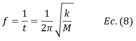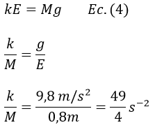 Aunque no se tiene la masa del bloque ni la constante de elasticidad de Hooke se puede determinar el valor del cociente k/M teniendo en cuenta que según la ecuación número 4 obtenida anteriormente