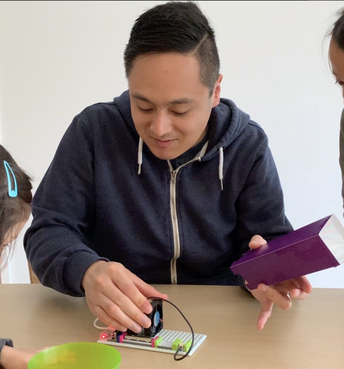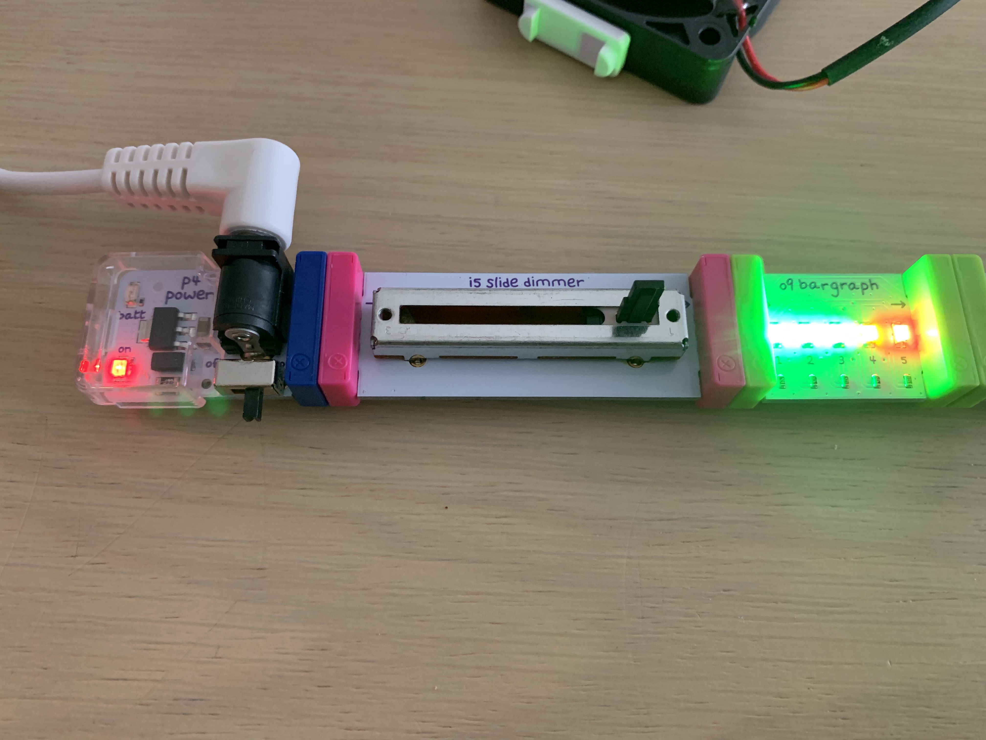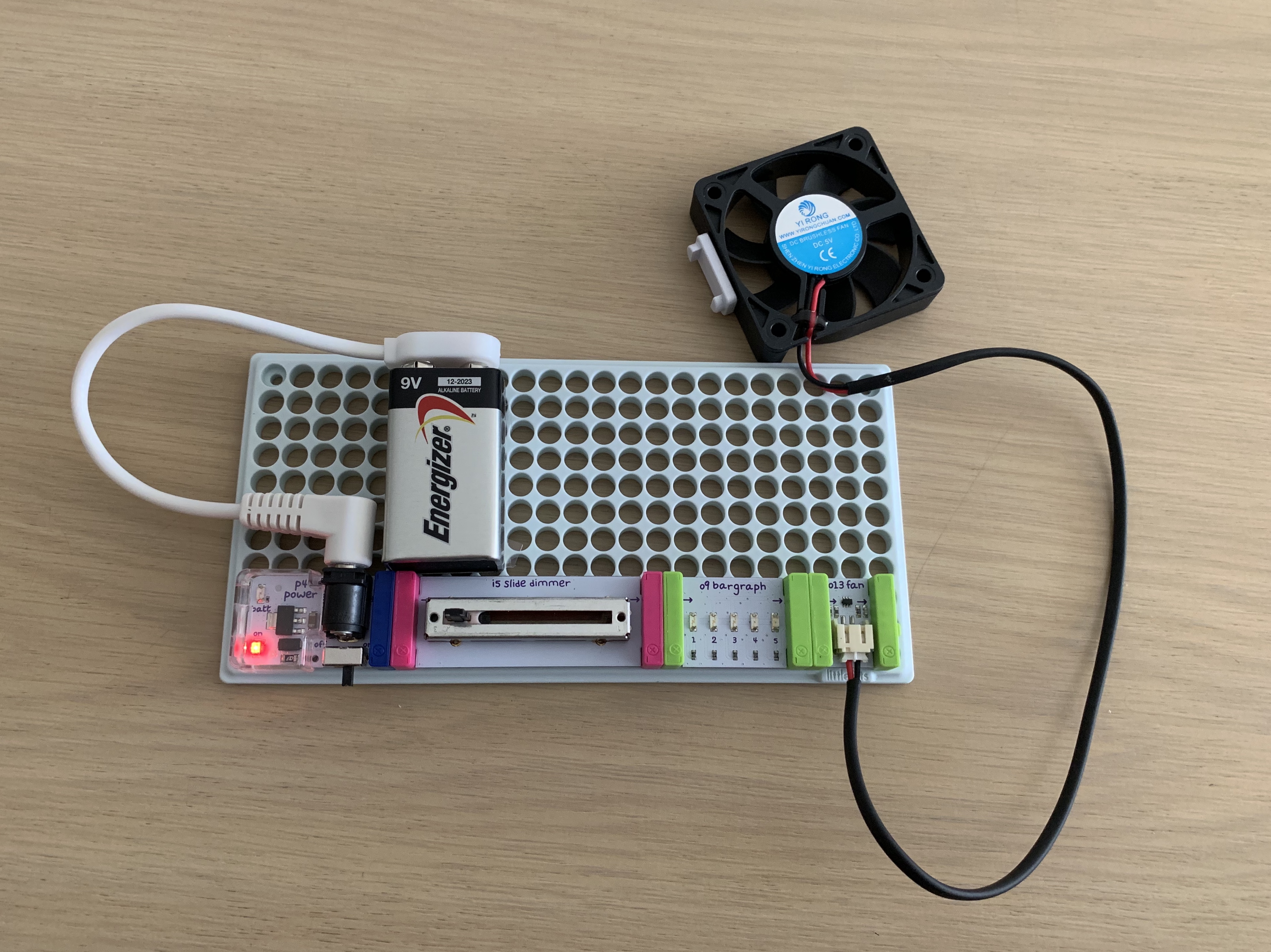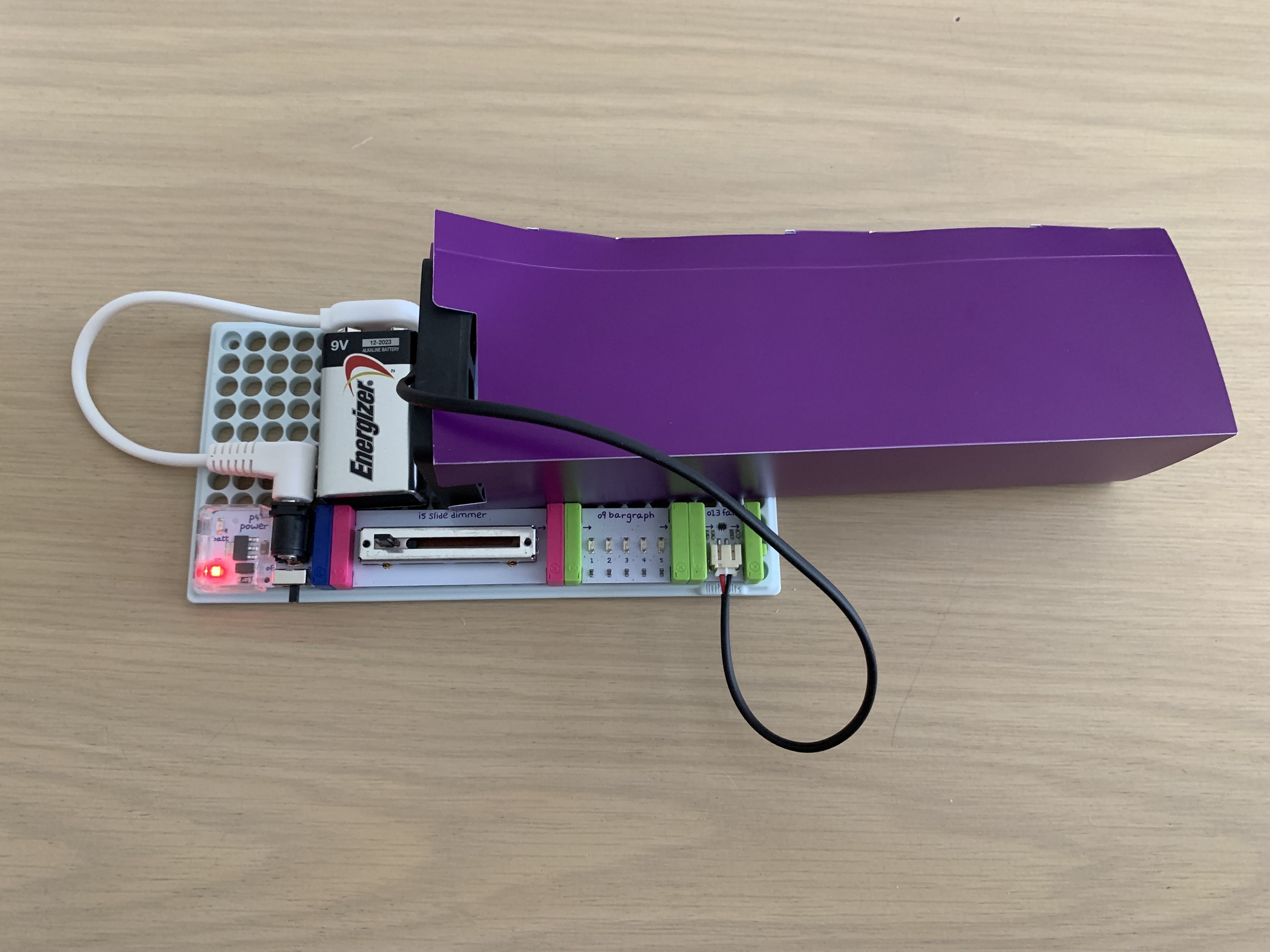 Time flies, and now I have three young children! It's been that long since I've attempted to do this circuity stuff...I picked up this littleBits kit a couple of months ago and decided it was time to build it and entertain my two older kids. They absolutely love bubbles! @leysa takes them outside, all the time, to run around and shriek using a big bubble wand.