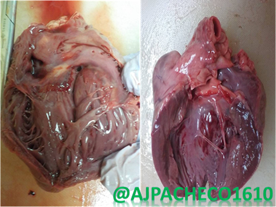A nivel de sistema cardiovascular, solo se evidenció en corazón una coloración rosado intenso (Figura 8), sin observar ninguna otra alteración.