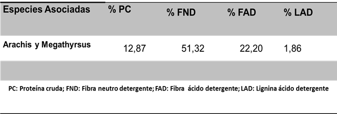 ha realizado ensayos asociando Arachis pintoi con Megathyrsus maximus CV. Tanzania (guinea), en dicho ensayo la siembra de la fabácea se realizó 30 días antes para evitar que el pasto la cubriera completamente, ya que los pastos tropicales tienen vías fotosintéticas C4, por lo tanto su crecimiento es más acelerado, los valores nutricionales del arachi asociada con Megathyrsus se muestran en la (tabla 3), Cabe destacar que la metodología del ensayo se compartirá con la comunidad steemista en futuros post.