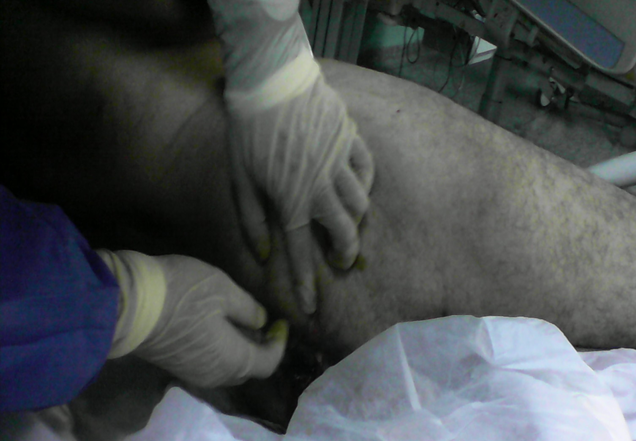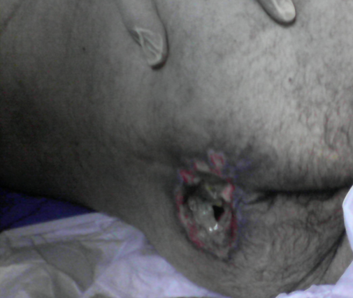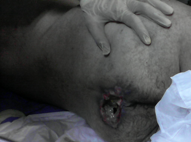 Dado el diagnóstico de la úlcera se realiza un cultivo a las secreciones con la finalidad de saber con certeza que microorganismo están presentes y así indicar los antibióticos necesarios, en este caso se le realizo el cultivo y estamos manejando al paciente con tratamiento conservador, que consiste en la indicación de antibioterapia y en la cicatrización espontanea, ya que no es criterio de una intervención quirúrgica es importante mencionar que si la úlcera por presión hubiese estado cerca de la región anal o en ella se hubiesen tomados otras medidas como una colostomía temporal, para evitar así el contacto con las heces y proliferación bacteriana, una vez resuelta la escara se establece el tránsito intestinal normal.