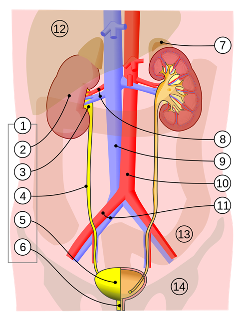 Anatómicamente los riñones son órganos retroperitoneales, formados por un gran número de nefronas, que constituyen la unidad funcional de estos, las cuales cumplen funciones básicas mediantes procesos como el filtrado glomerular y el transporte tubular de agua y solutos, asimismo la eliminación de productos de desecho (urea, creatinina) originando de esta manera la formación de la orina.