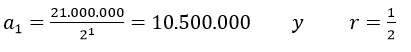 La primera parte del lado derecho corresponde a una sumatoria que conforma una progresión geométrica de la forma