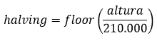 La variable halving depende de la altura de bloque de acuerdo a la siguiente relación