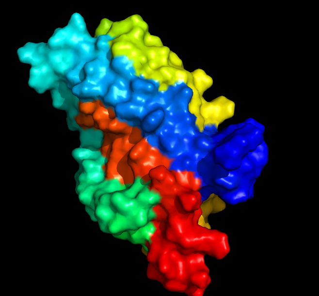 (Surface representation. The image was created by me with the help of PyMol - open source tool for molecular visualization/exploration. PDB-file was obtained from PDB)