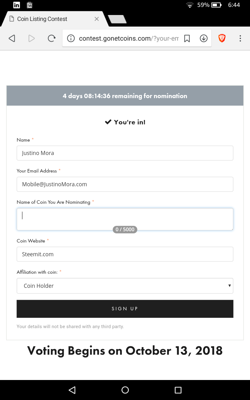 Just voted, I can believe PAC coin has so many votes. Hopefully a miracle occurs and we become #1 haha