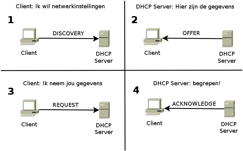 [A DHCP discover message is a broadcast from the client to the server using UDP port 68. Credit: Wikimedia. CC4.0 license. Author: Demchig0602]