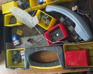 The TPS-3714 kit shown includes a telephone set where an end to end connection was established, by connecting the telephone to a power supply (a 9V DC battery in this case) speaking to into the microphone causes a change in the current in the telephone circuit, transmission of that current signal is done through wires and cables, and on getting to the other end, the current there is decoded.