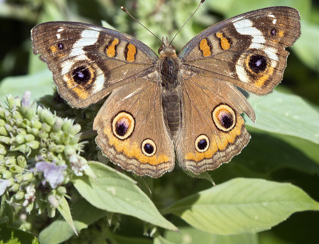 The buckeye butterfly. Hahaha, this one's name sounds funny right?. Let's call the name together, let's go guys buc-ke-ye (Lol!!). They have brown and orange color. Take a look at the wings, they've also got patterns. Those patterns are actually used to put off predators.