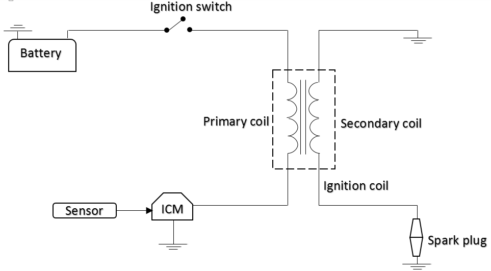 It all starts with the driver twisting the ignition key which technically results in closing of the ignition switch. By virtue of this, current is sent to the primary side of the ignition coil. Being a step-up transformer, the ignition coil greater multiply the voltage collected from the battery and then sends it to the spark plug. Thereafter, a potential difference is set off between the central and ground electrode of the spark plug and voila, a spark for air-fuel ignition and thus combustion is produced.