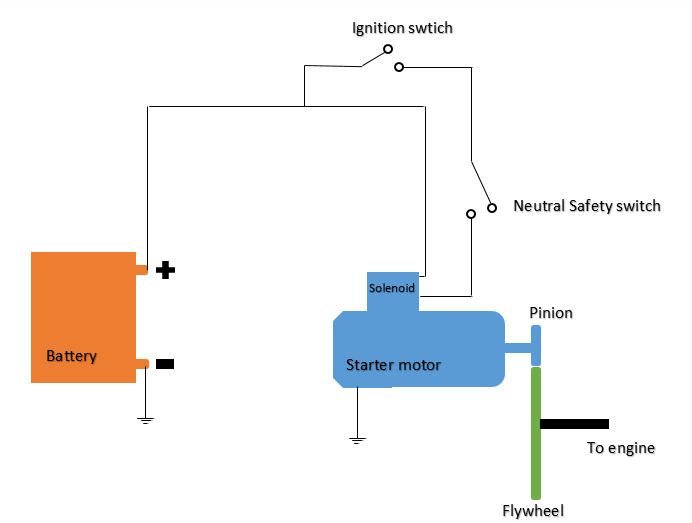 Before we can crank the engine, one major condition must be met. This condition is that the Neutral safety switch must be closed.