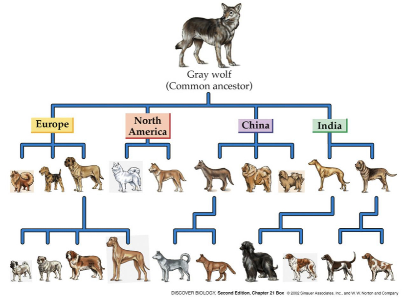 Dogs interbreed with different breeds but they are still a dog. They can breed with a wolf too Hmmm... This is were we see hybrids, sub species, genetic populations, etc. Since Wolf is the origin species of dog why don’t we see any other DNA from outside species in a dog?