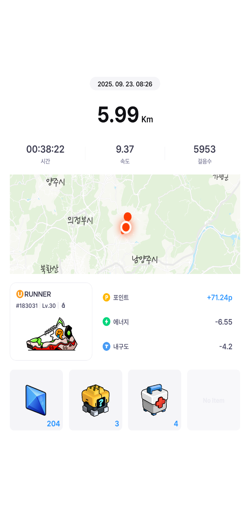 9월 300km 완주 챌린지_오늘운동완료 6km(목표6km)