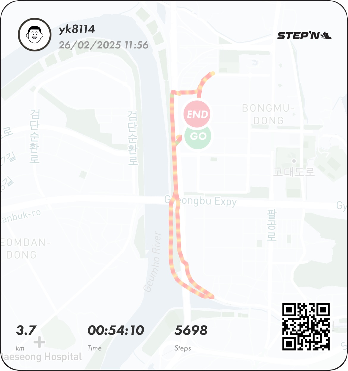 [25/02/26] 건강 투자하자~!! 오운완 3.7km (목표 2km)sjsr (58)in #stepn-kr • last year (edited)봄을 기다린다면 M2E (Move to Earn) 에 참여해 보세요~ 오늘도 겨우 오운완 ㅋㅋㅋ #오운완(20250226/3.7/2) #zzan #krsuccess #kr-m2e