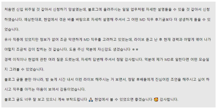 비전공자, 비경력자, 그리고 MD초년생 분들에게 제가 경험과 시행착오를 통해 배운 것들이 좋은 정보가 되었으면 좋겠습니다.