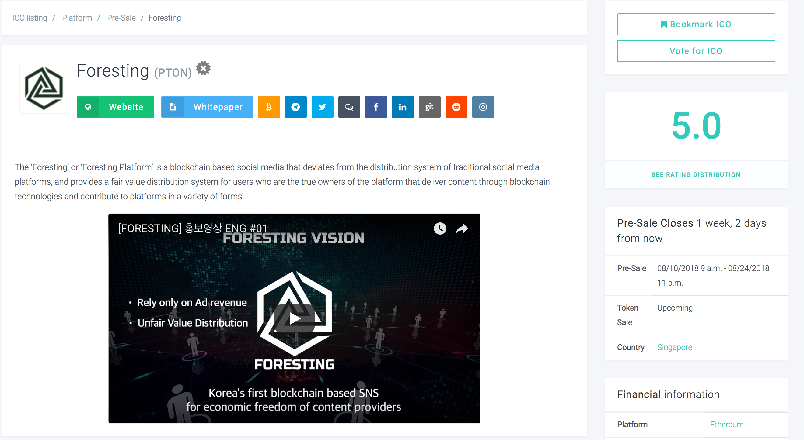 블록체인기반 소셜미디어 플랫폼 Foresting 에서 1차 Pre-Sale 을 진행하고 있습니다.