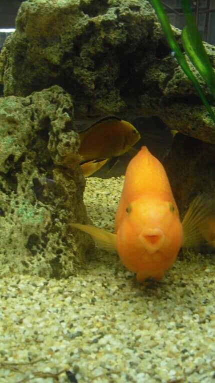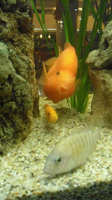 I saw this orange fish in a hotel fish tank.