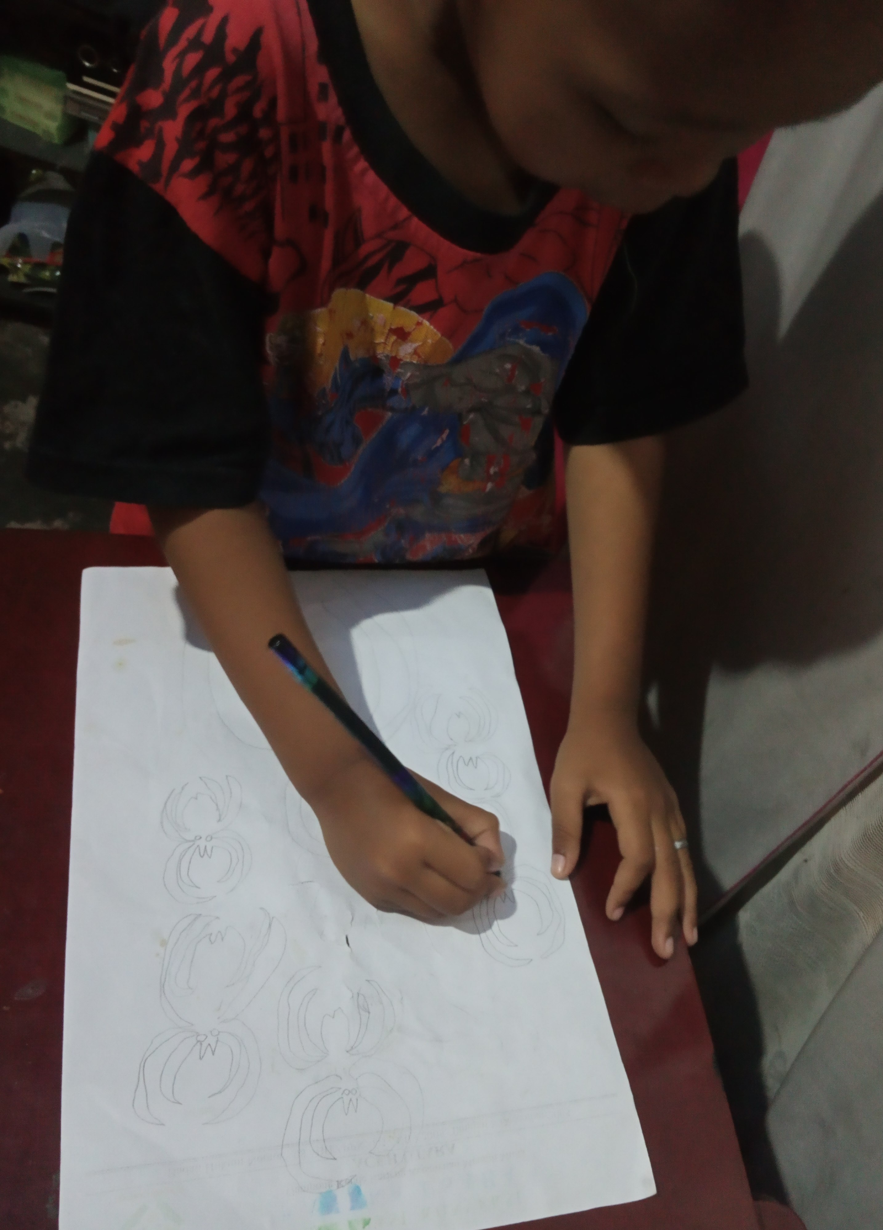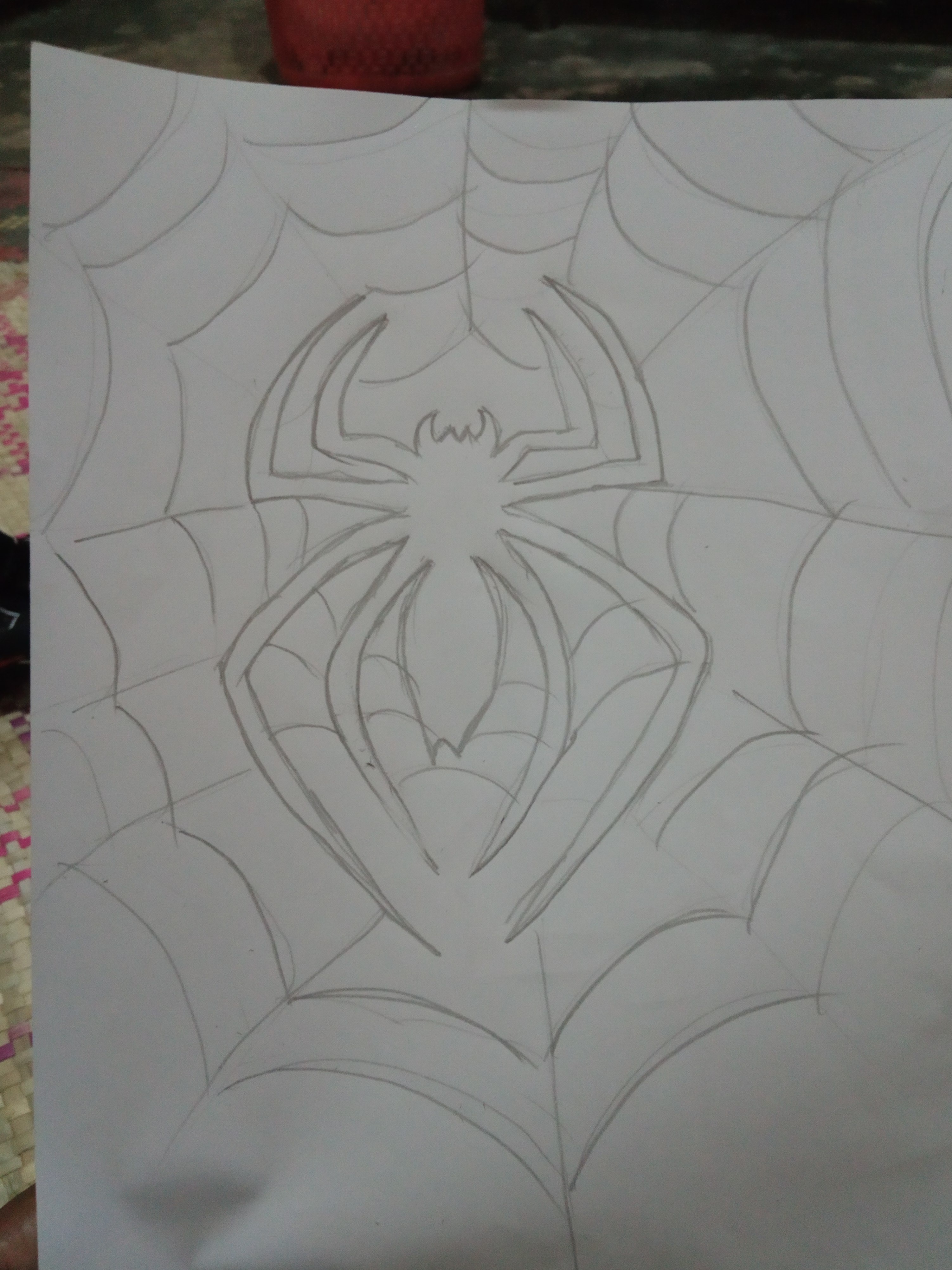 It was late at night, but I had to prepare a sketch of my making spider web for my son. Spiderman is my child's favorite super hiro figure. We begin to draw the lines that compose the legs and arms of the spider. Spiderman is a superhero figure who is very popular among children. It's a web spider I made with my son. And I share them with you.