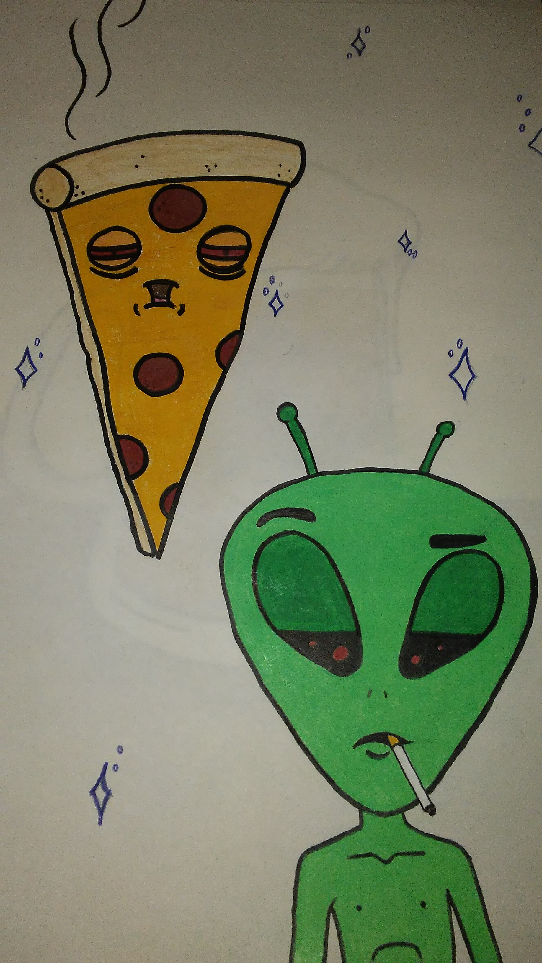 Baked Pizzashadead (25)in #stonerart • 8 years ago #amateurart #coloredpencils #backtobasics #spaceinspired