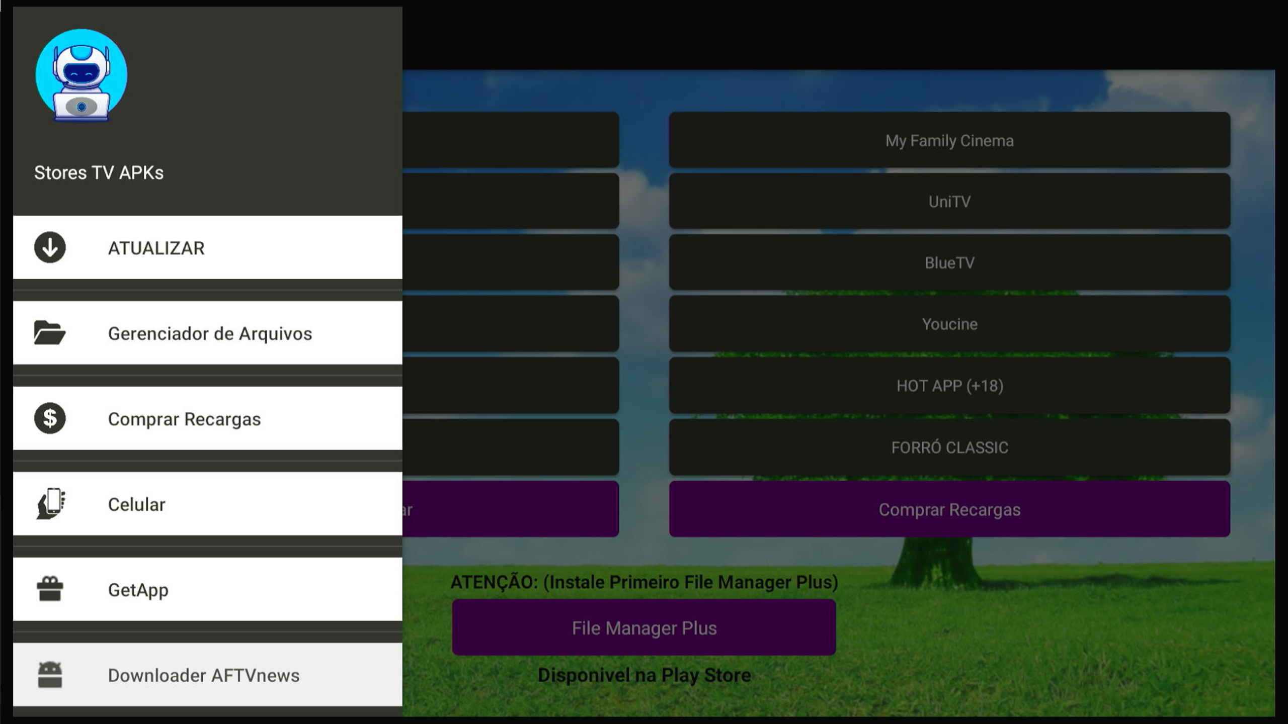 tv com o sistema operacional android usando a combinação dos dois aplicativos O Gerenciador de arquivos file manager plus e Loja de aplicativo: Stores TV Apks você vai ter os melhores app na tela da sua TV