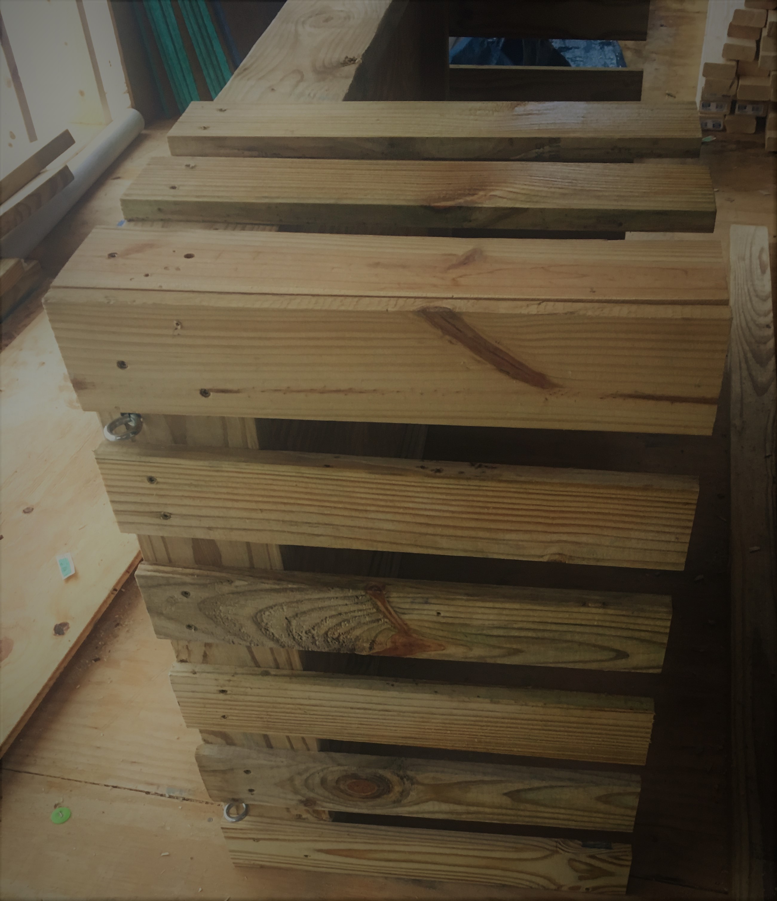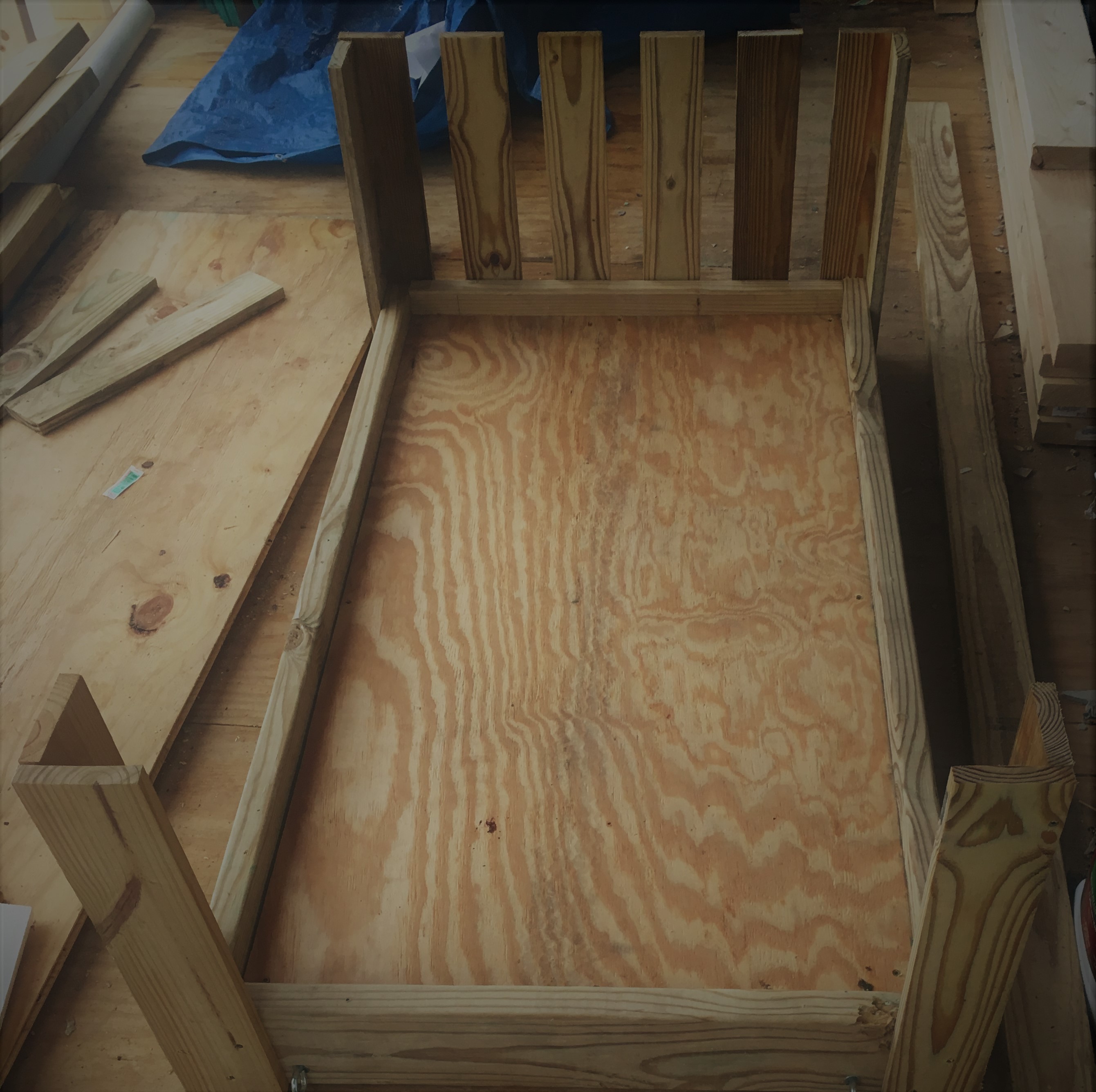 The sides and the back of the swing we used 1x4's. We made them two inches apart from each other.
