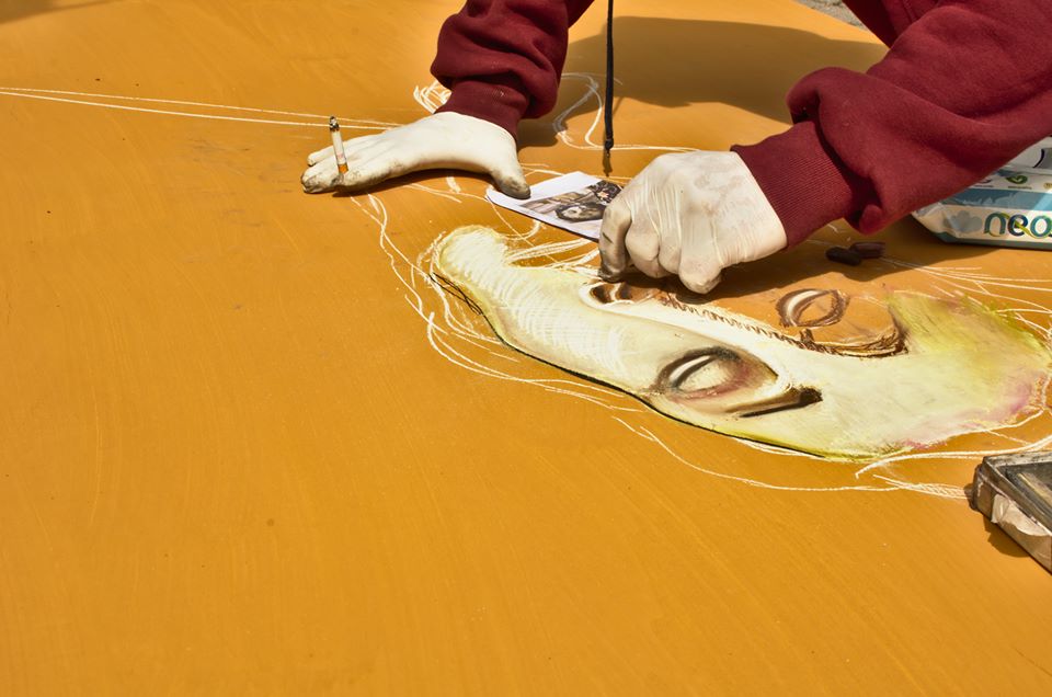 Naples-Modena takes about 8 hours by car and chalk painting is phisically demanding because of the hot weather and the dimensions required for the painting (they're usually 2x1,5 metres and they need to be painted on the floor in one go), so we planned to leave at about lunchtime in order to arrive early and get some rest to be fresh and rested the day after.