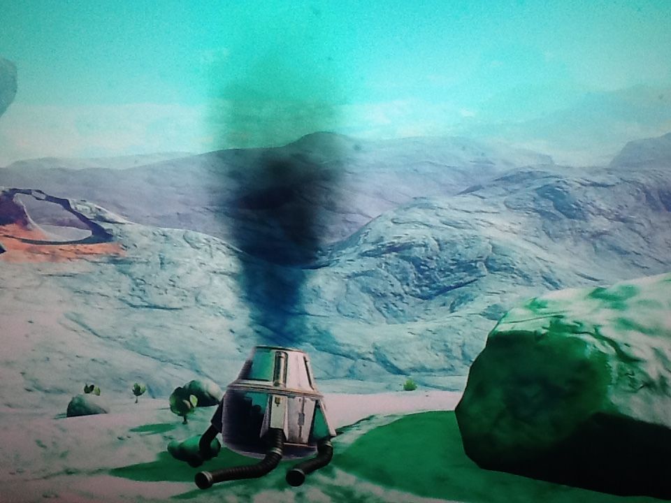 Then, I caught sight of something I did not expect to find on this frigid landscape. There, laying abandoned by a rock, was a piece of alien technology. Not ancient and mysterious like those monoliths I had encountered before, but rather a component of some passing spaceship. It sparked and belched black smoke. It had only recently been abandoned. My goodness, could the ship it belonged to still be in the vacinity? I hurriedly called for my craft and headed into orbit.