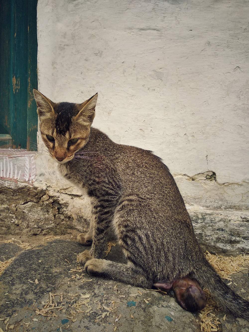 One day, a stranger cat came to my backyard. She was pregnant and also injured, most probably, by some road accident she faced a day ago. When I heard her harsh cries from my room, I immediately rushed to the spot and saw her giving birth to a baby.