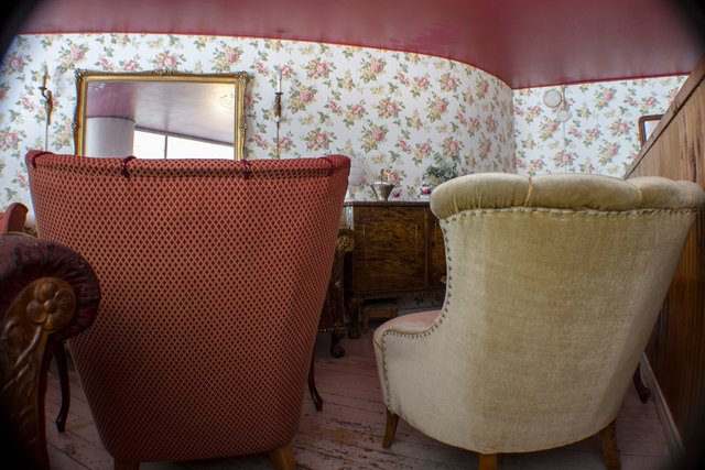 – Well, I'm ready so I might as well start. What an awful wallpaper. And the ceiling! At least the furniture is slightly interesting.The young woman started taking photographs, not really knowing where to aim, when suddenly the old woman said, in fact she almost shouted: