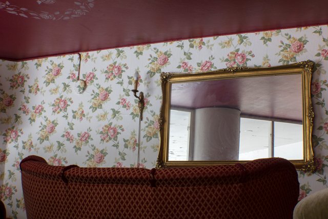 Gaby holds her breath, the breeze gets a little bit stronger, a light, plastic vase with it's few dried and dusty flowers falls to the floor. One of the dry, dark red roses crumbling to tiny pieces. Gaby moves her finger and takes a photograph after an other. Click, click click. The popping fades out. Breeze dyes. Silence. Gaby breathes out.