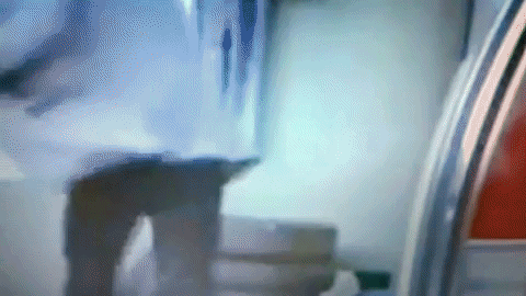 The GIF scene your witnessing, depicts a desperate man on the run from a non-traditional religious faction group that caught him spying on them to gain detail about their "hush-hush" operations (I'll point out his fate after they caught him which will depict an end result in a later GIF scene.)