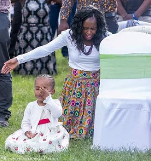The toddler was captured on camera on her knees and in tears during the praise and worship session at a church service recently.
